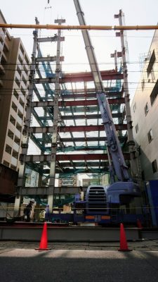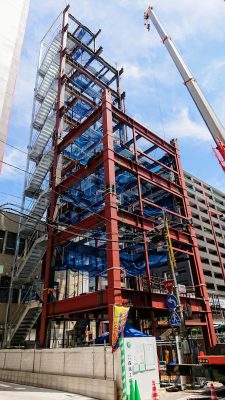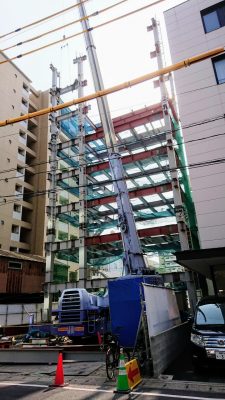 福岡市博多区で建方中のオフィスビルの現場です。