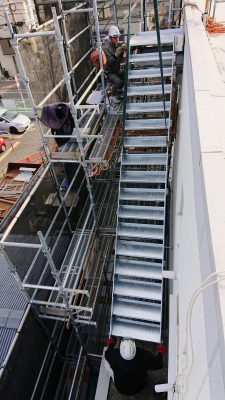 松谷鐵工 福岡 ものづくり 鉄骨階段 建方
